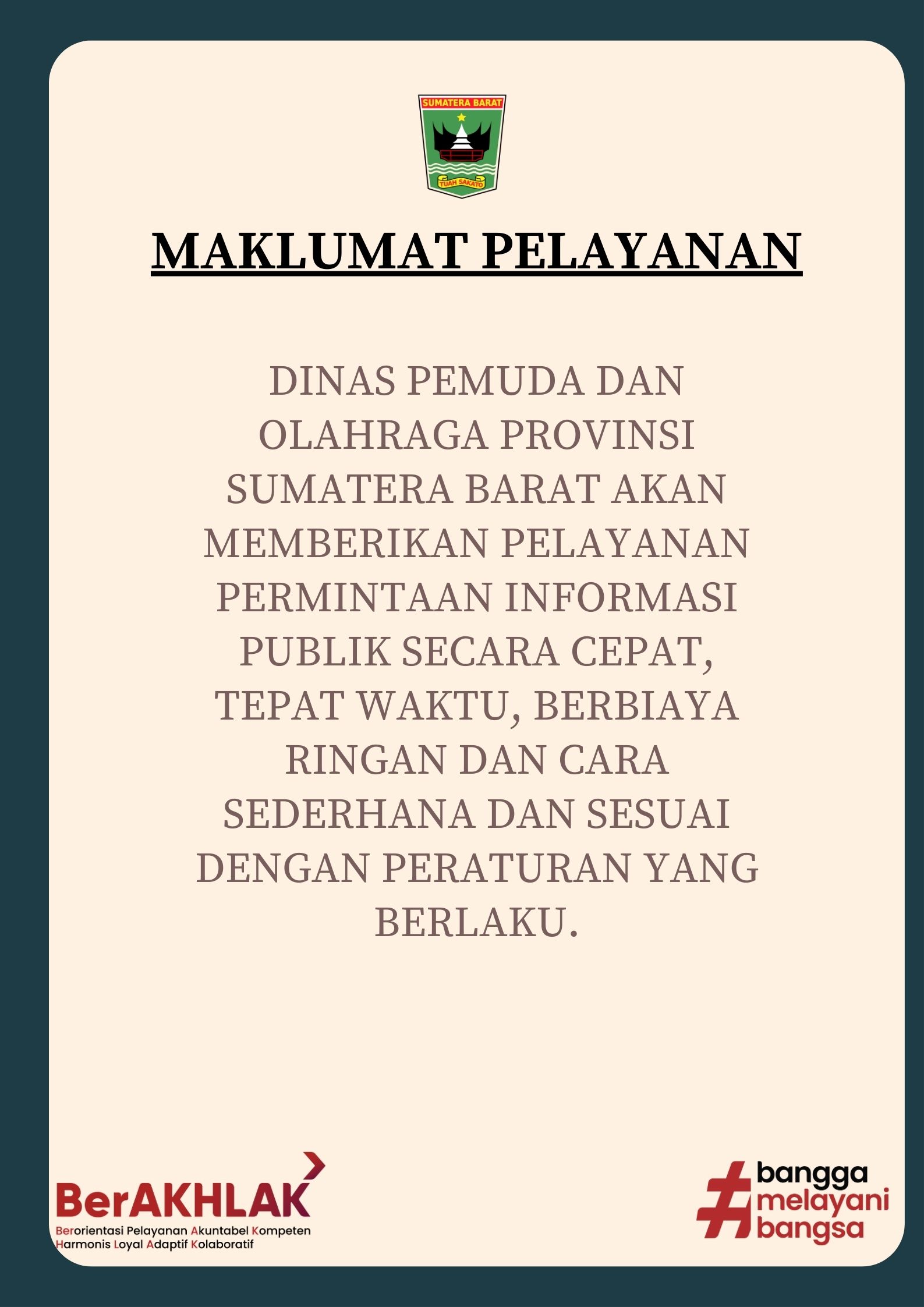 Maklumat Pelayanan Informasi Publik Dinas Pemuda dan Olahraga Provinsi Sumatera Barat